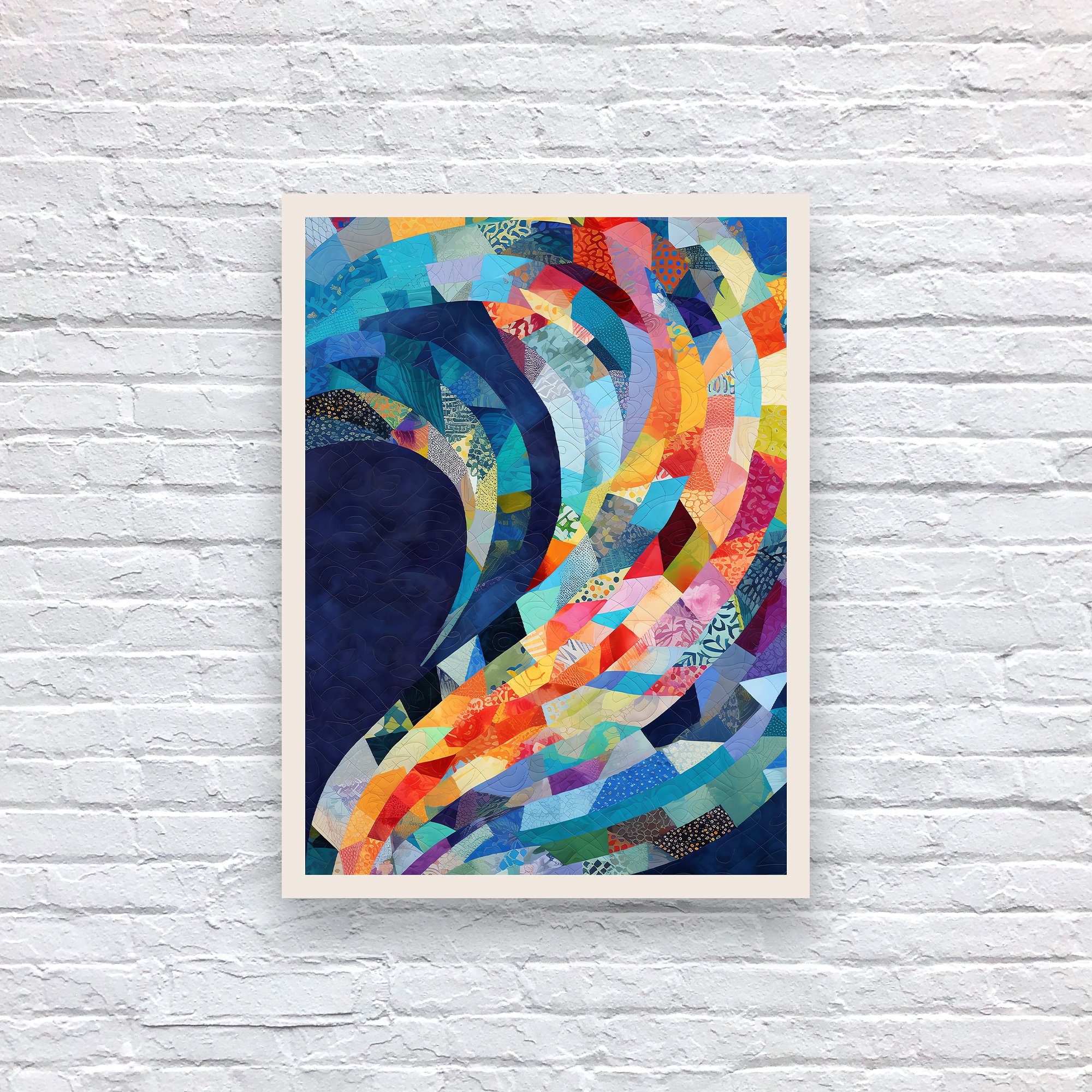 The artwork explores the intersection of reality and fantasy, inviting viewers to immerse themselves in a prism of vivid colors and abstract shapes.